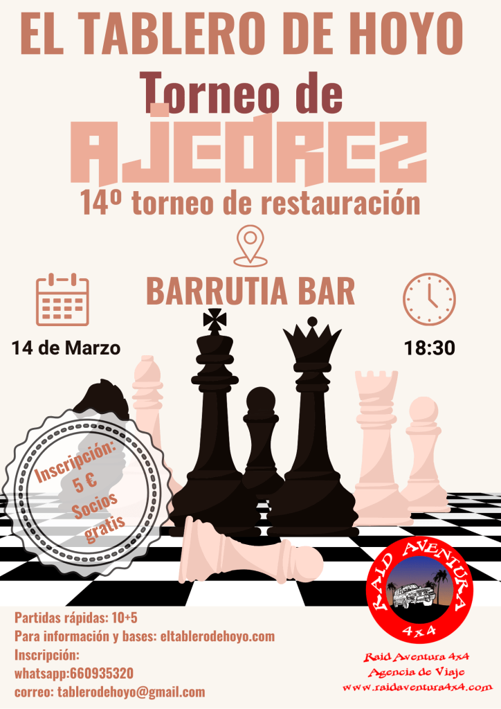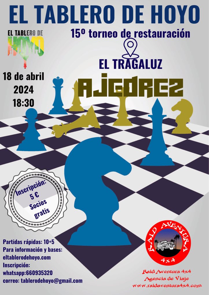 Pago por transferencia: a la cuenta de OpenBank ES8900730100520506460496 Beneficiario: club deportivo elemental de ajedrez el tablero de Hoyo, indicando: Inscripción Torneo y Nombre del jugador.
